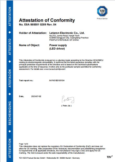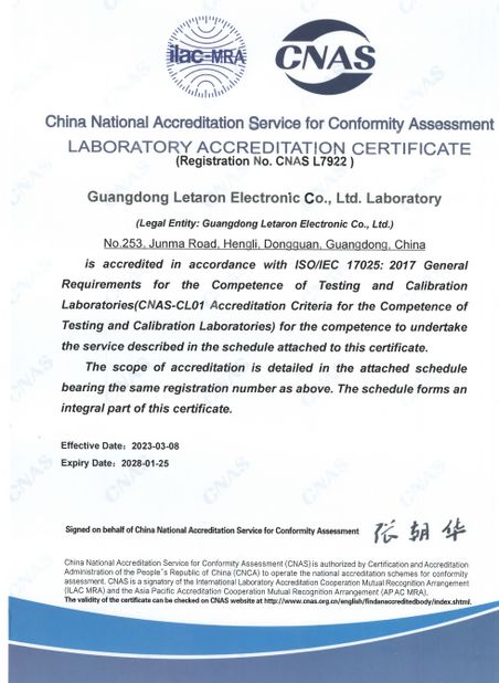 A Letaron construiu um centro de pesquisa de tecnologia de qualidade e estabeleceu relações de cooperação estáveis com organismos de certificação autorizados no país e no exterior,que pode prestar serviços de ensaios e certificação de parada única para empresas a montante e a jusanteEm 2021, foi avaliado como a plataforma de serviço de parada única da Infraestrutura Nacional de Qualidade (NQI) pelo Ministério da Indústria e Tecnologia da Informação.Tornou-se uma vantagem competitiva única para a Letaron..